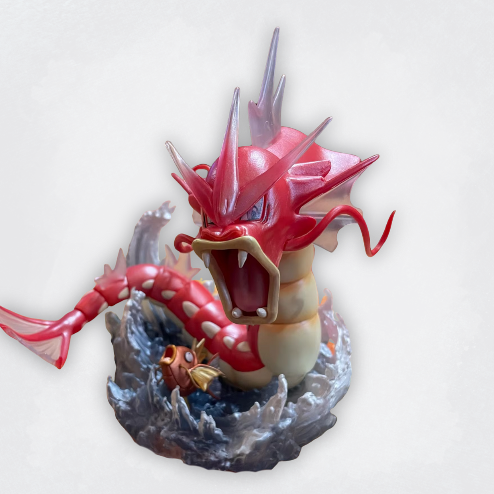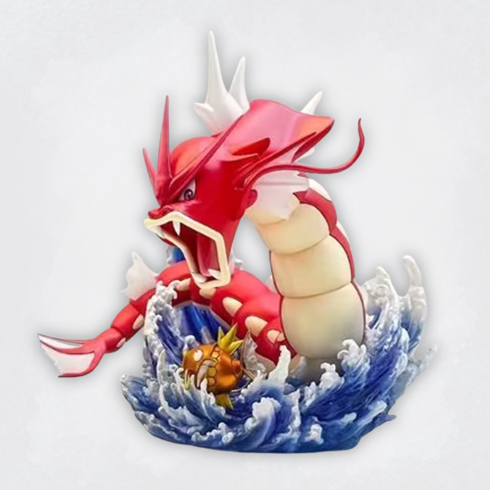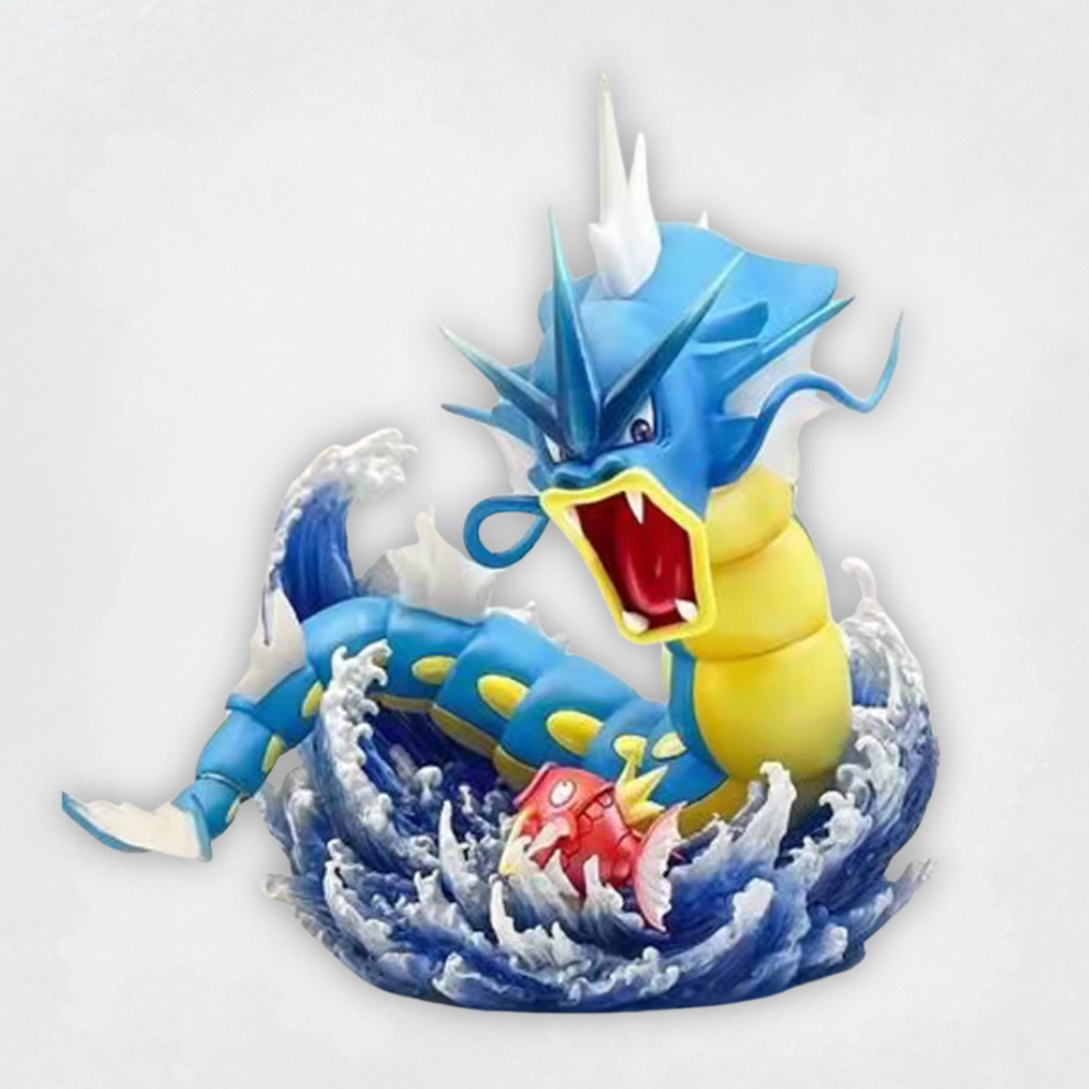 Have fun with these two unique Gyarados figures: the regular version and its shiny, vibrant version! Each figure comes with a Magikarp to place on the base, for a fun and colorful touch. Ideal for reliving your favorite Pokémon adventures or expanding your collection with style and originality.